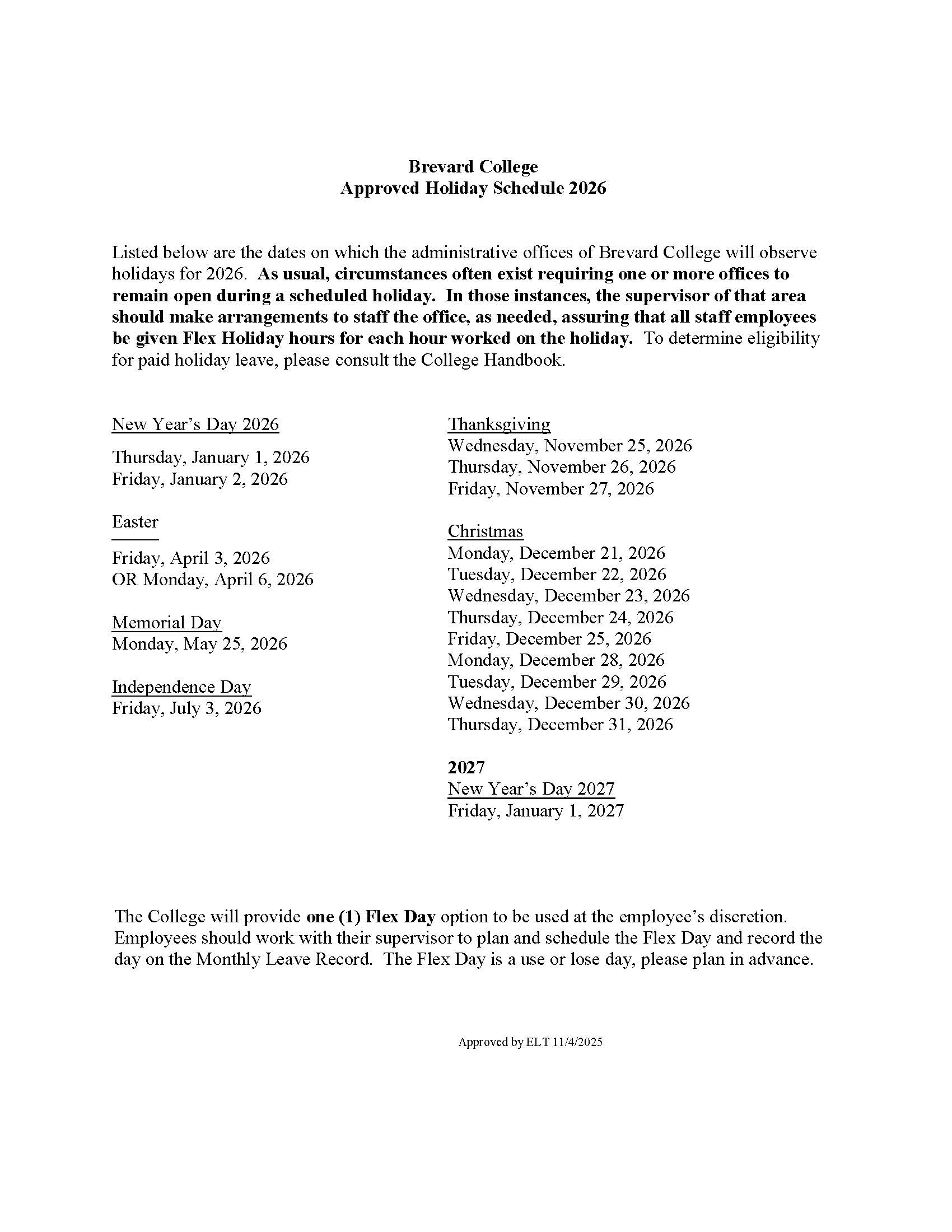 Employees who work at least 30 hours per week 12 months per year are eligible for the following paid holidays in calendar year 2026.
